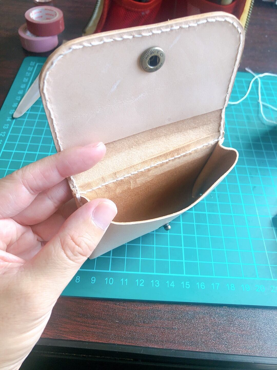 地元茨城県の海や空をイメージして染色した、牛革のコインケースです。